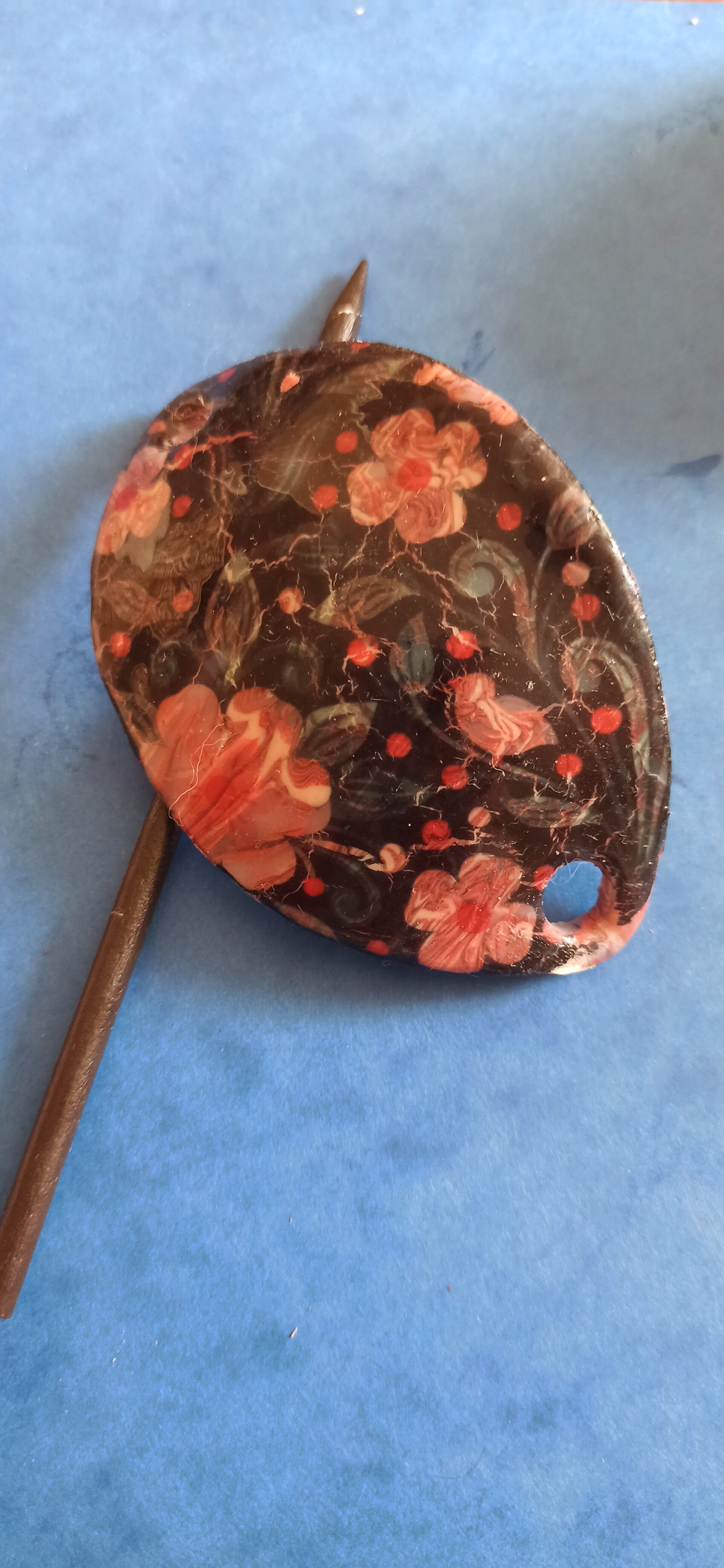 Jolie barrette à cheveux fait main en pâte polymère , c 'est une pièce unique qui à été résinée pour plus de solidité