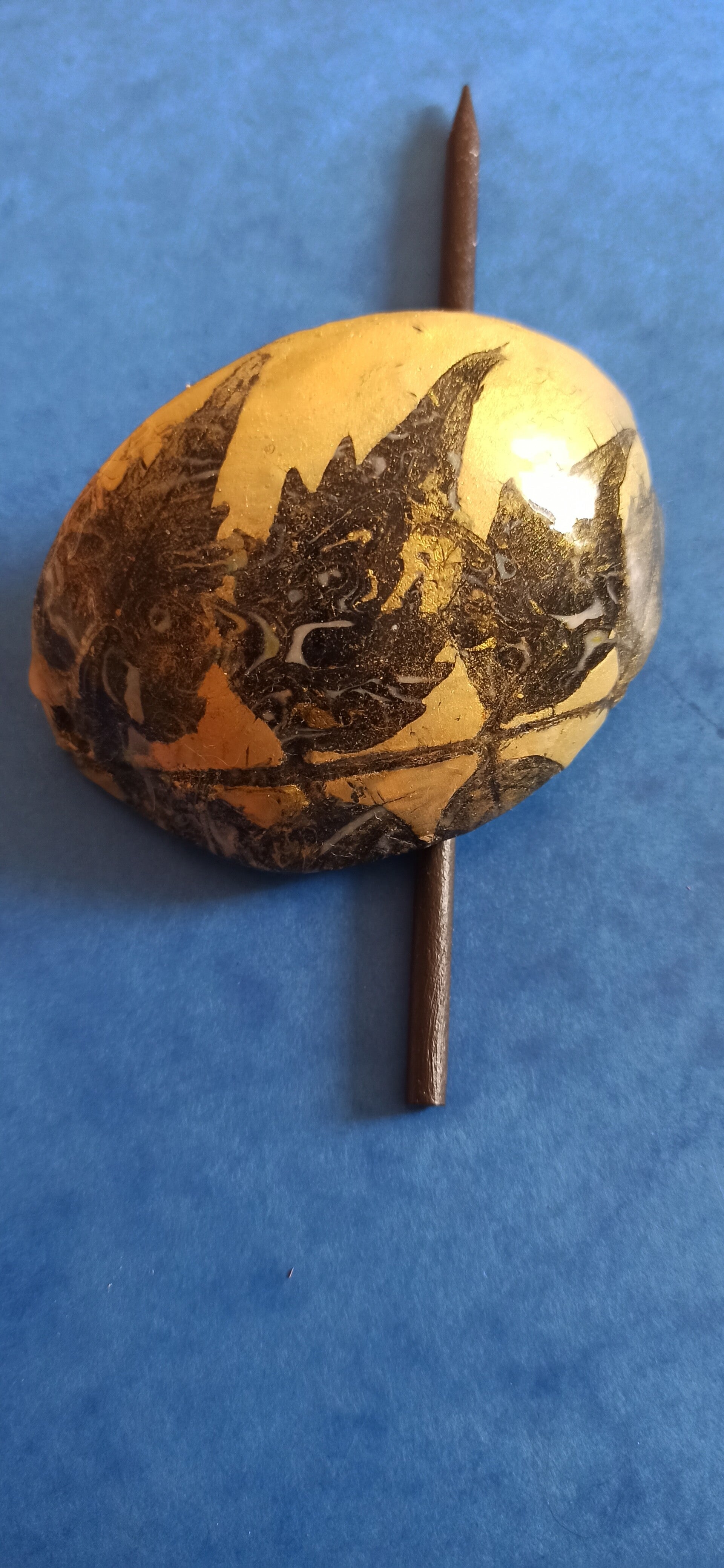 Barrette fait main en pâte polymère, c'est une pièce unique réalisée à partir de végétaux, de poudre d'or en fines couches ainsi que de peintures foncées , le tout étant un accessoire très unique par son motif