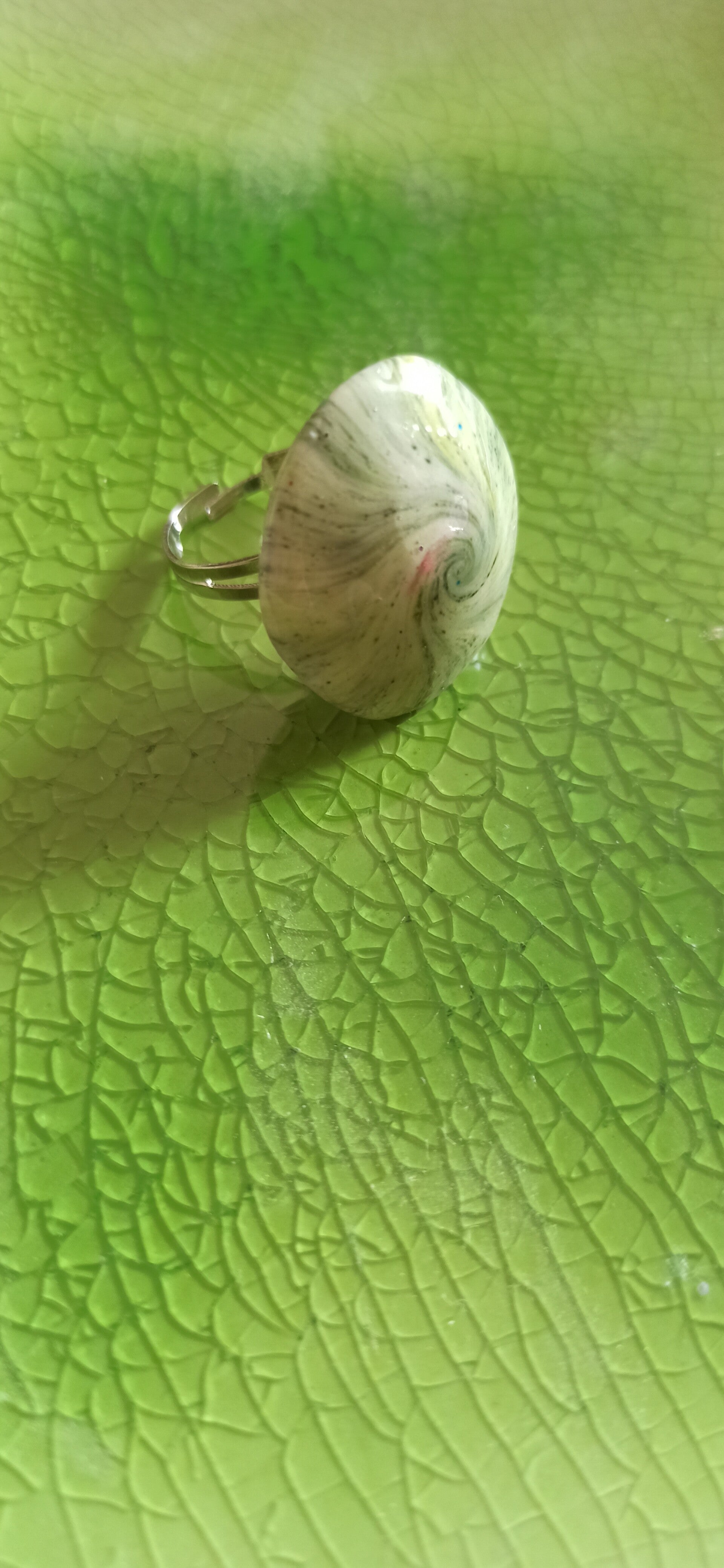 Petite bague spirale verte fait main en pâte polymère, c'est une pièce unique faite ar mes soins à partir de poudre de mica incorporé dedans